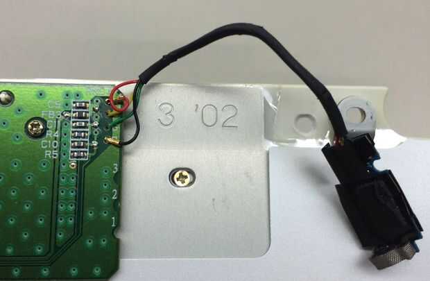 Una vez se enfría, revise su trabajo para cualquier cortos en la soldadura. Este es un buen momento para comprobar si las conexiones son correctas la y sensor está trabajando. Enchúfelo en cualquier Mac ejecución a 10.4.8 o superior. Consulte la sección USB de System Profiler para el sensor de infrarrojos en el hub USB del teclado. Si no ve el objeto, trate de volver a soldar las conexiones. Tornillo de la placa de circuito en el teclado.