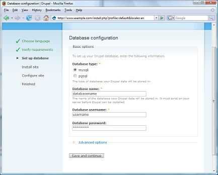 Ahora, puede utilizar el procedimiento habitual para configurar el sitio.