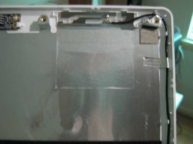 hay un cable negro y un cable blanco, cada uno se sueldan para separar antenas (es decir, algún estúpido garabato del metal de hoja) en la parte superior de la pantalla. Utilice el cable blanco porque tienes más flojo - cuando se pone detrás juntos solo Conecte el cable blanco en la entrada de la tarjeta de Wi-Fi que desee utilizar.