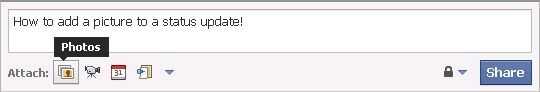 Agregar una imagen a una actualización de estado de Facebook (1 / 4 paso)