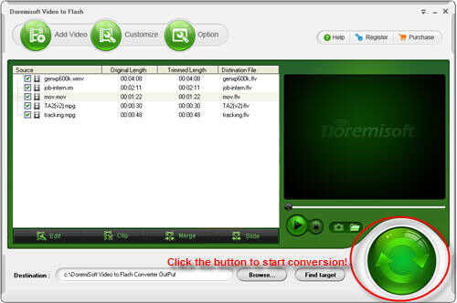 $49,95Doremisoft Video to Flash converter es el mejor video flash software para convertir el vídeo existente a Flash video formato FLV y SWF que es la primera opción para añadir vídeo al sitio web y blog. Y al mismo tiempo genera automáticamente un v