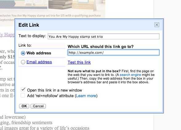 Paso 3: Introduzca la dirección URL desea que las palabras de enlace a / Introduzca su dirección de correo electrónico