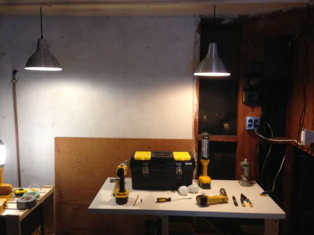 Los dos colgantes que nos va a instalar en este Instructable son en mi garaje. La ubicación de mi taller aspirantes a es oscura, incluso con la puerta del garaje abierta y todas las luces. Supongo que no ayuda el hecho de que el garaje todo está encendido de dos lámparas de techo pequeño.