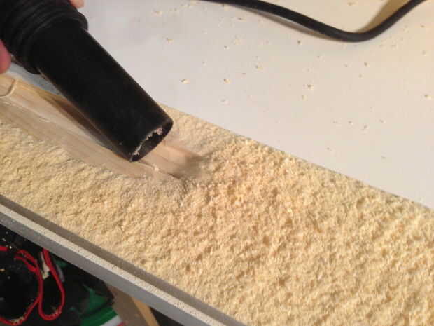 Asegúrese de la profundidad de 1/4 de pulgada. Si su artefacto utiliza cables más gruesos, Ayuste, pero consciente del espesor de la Junta. No propongo hacer un surco más profundo que la mitad del grueso del tablero.