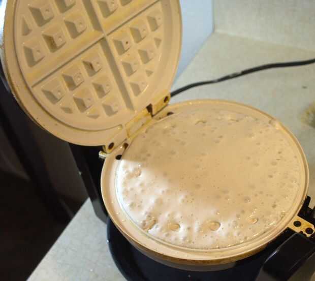 Añadir una cantidad adecuada de masa para la gofres o plancha.