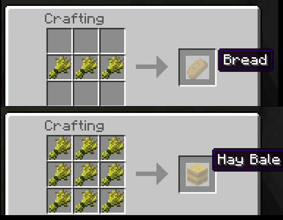 • Cuando se cosecha trigo, usted conseguirá trigo y luego una o más semillas para plantar más.