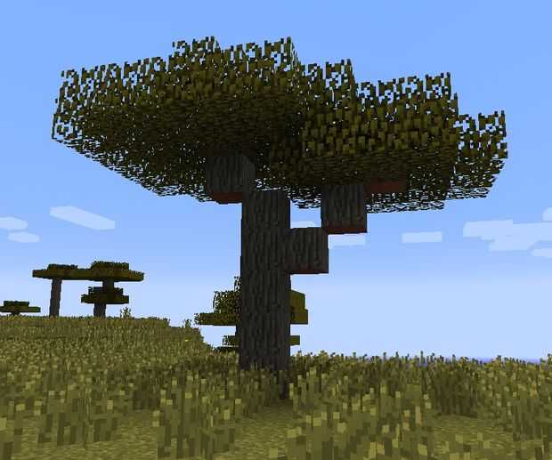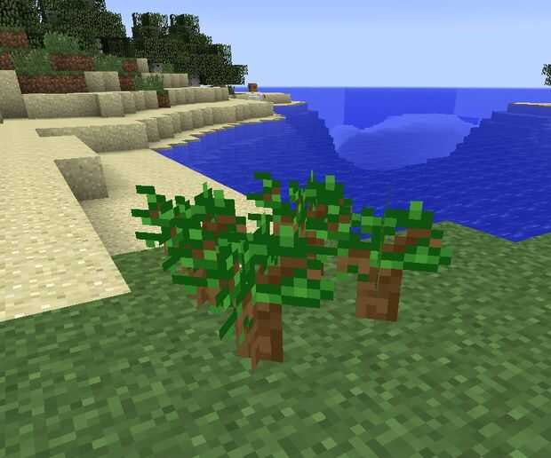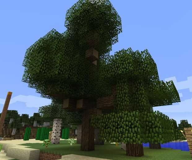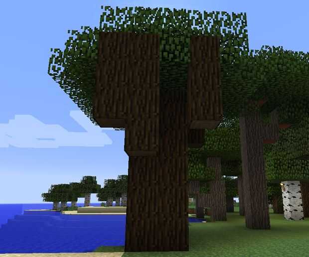 - en lugar de crecer recto, como es normal para los árboles de Minecraft, que crece en una formación de extrañas crecimiento (puede crecer diagonalmente con bloques no necesariamente justo al lado del otro