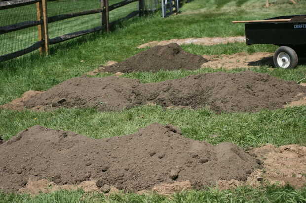 Tomar un tractor o una carretilla y a difundir una buena cantidad de mantillo sobre cada una de sus parcelas. Usted puede poner sus cajas ahora o más adelante, pero debe tener un buen esquema de donde debe ir su suciedad, como resultado de voltear la hierba.