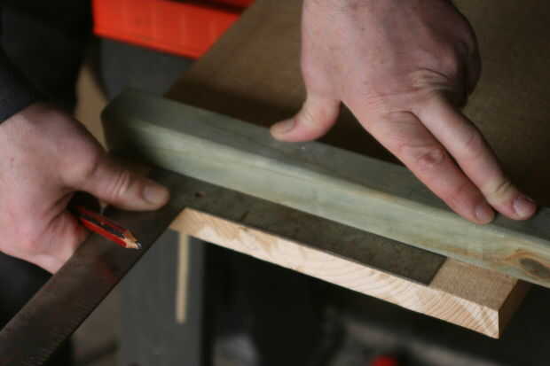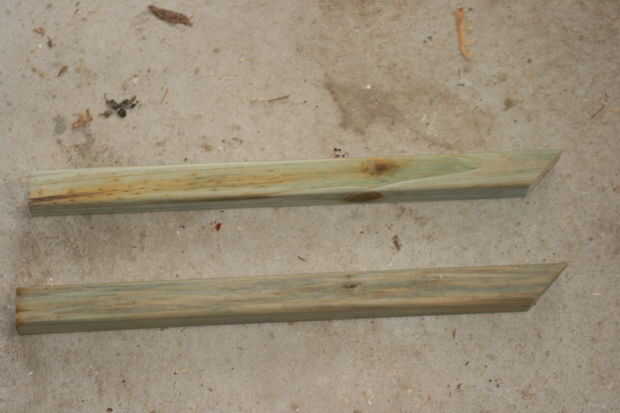 Una vez que han cortado sus estacas de pino en cuatro trozos con un ángulo de 45 grados, ahora pasemos a la construcción del resto de la caja.