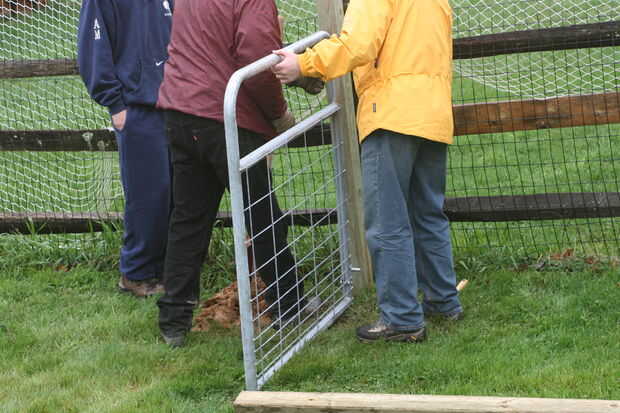 Asegúrese de raspe de la hierba que puede dificultar la puerta suavemente abra y cierre. Tratar de construir a una especie de tope para la puerta también. Las rocas son candidatos perfectos.