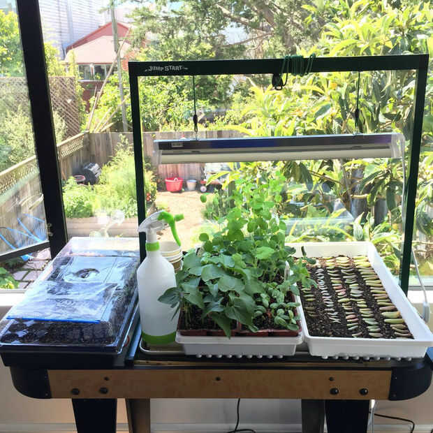 Cultivo de plantas de la semilla es bastante fácil. Pero, realmente sano arranque las plantas de semilla en el interior requiere alguna ayuda adicional. Las plántulas necesitan agua, tierra, calor y luz para crecer bien. Viven en un entorno urbano, rara vez tenemos una ventana que proporciona la luz directa sol todo el dia. En el hemisferio norte, el sur hacia windows recibirá más sol. Se bloquean mis ventanas del Sur frente a la mitad del día por mi casa de vecinos. Mi Oriente y Occidente frente a windows Obtén sol en aproximadamente medio día. Cuando empecé las semillas en el interior, empezó bien, pero luego creció largo, flaco y doblada sobre. Cuando esto sucede, no son muy robustos y tardan más tiempo en afianzarse en el jardín. Durante mucho tiempo, yo era reacio a intentar crecer luces o calefactoras, debido al extra costo. Pero ambos han hecho una gran diferencia en la germinación y cultivo starter saludable. Armé este instructable para ayudar a alguien que sufrió de este mismo problema. Dar el paso y hacerlo. Aunque hay más costo, será mucho mejor en el largo plazo, y mejorará su experiencia de jardinería.