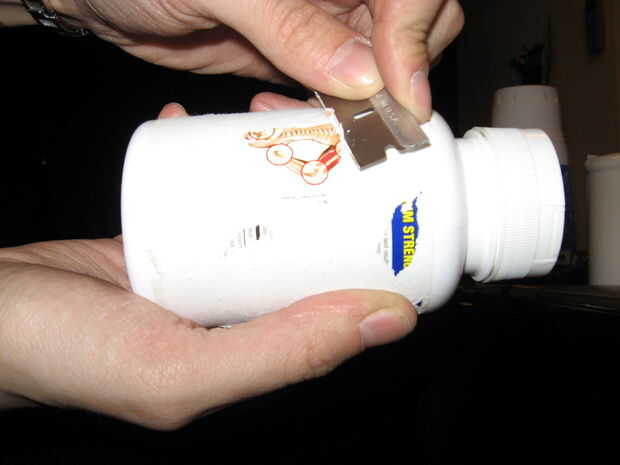 Si se ajusta la botella, empezar a quitar la etiqueta enjuagándolo bajo agua caliente, a continuación, utilizando una cuchilla de afeitar para cuidadosamente quitar la etiqueta. No ejercer fuerza detrás de la hoja, simplemente usar la fuerza suave para quitar la etiqueta de floja, trabajando lejos de sus dedos en todo momento.