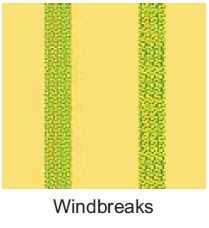 Cortavientos - en áreas con fuertes vientos, plantación de árboles altos y densos puede ayudar a prevenir la erosión del suelo y daño a los cultivos. Tenga cuidado de no elegir demasiado alto de los árboles, como pueden crear una corriente descendente de la parte superior del dosel y causar aún más erosión y daño.