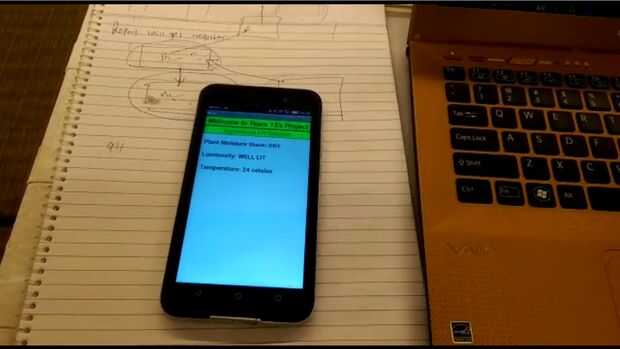 El sensor recibirá los datos de campo y con edison enviará por internet. Esta información será recibido por la aplicación sobre smartphone donde granjero puede monitorear los parámetros.