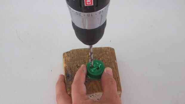 La forma más fácil de encajar los tubos en las botellas es a través de un agujero en la tapa. Necesita dos tapas que tienen dos agujeros y una tapa que tiene un agujero. Sólo puede perforar los agujeros con una broca un poco más pequeño que el tubo de aire.