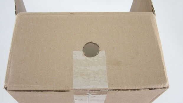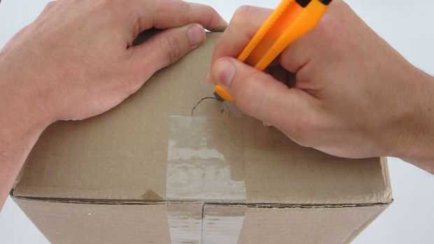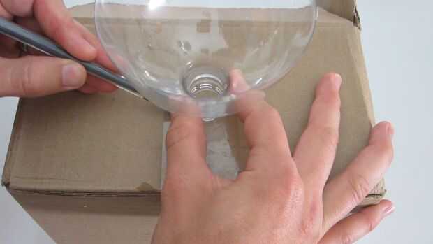 Primero tenemos que colocar el embudo en la parte superior de la caja. Trazar el contorno del extremo estrecho del embudo en el centro de la parte superior de la caja. Luego con cuidado cortar este círculo con un cuchillo.