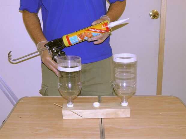 Nota: Puede utilizar el pegamento de PL Premium en su lugar. Utilizamos el pegamento Sikaflex no es poroso y es bastante flexible que evita fugas al estiran las botellas bajo presión.