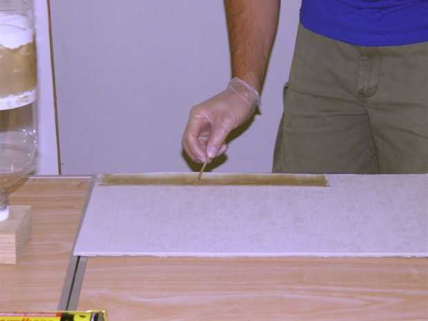 Nos gusta estirar y la funda a la mesa para que sea más fácil aplicar el pegamento de la cinta.