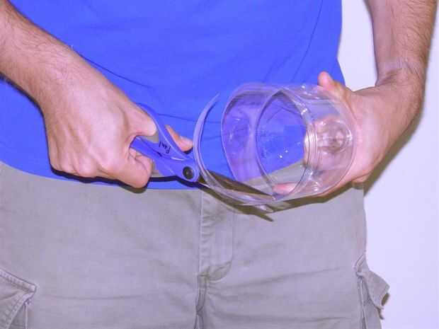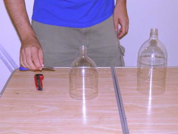 Cortar las botellas de las secciones de fondo #3 y #4 incluyendo la cresta media forma de la botella (en algunas botellas). Éstos se convierten en los manguitos de refuerzo que encajan sobre los extremos de las botellas empalmados.