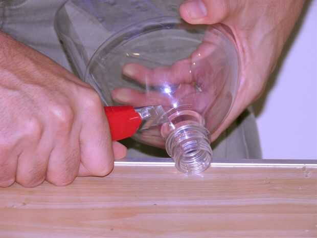 Cortar los cuellos de botellas #3 y #4 para que el agujero de la izquierda es sólo lo suficientemente grande como para deslizarse sobre los cuellos de las botellas empalmados.