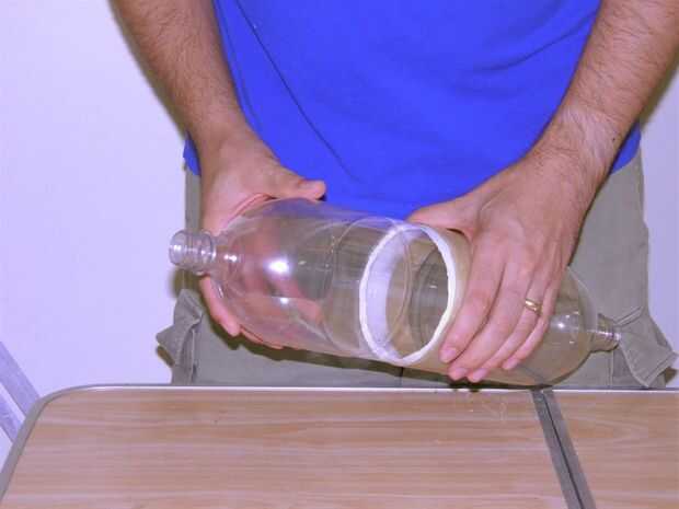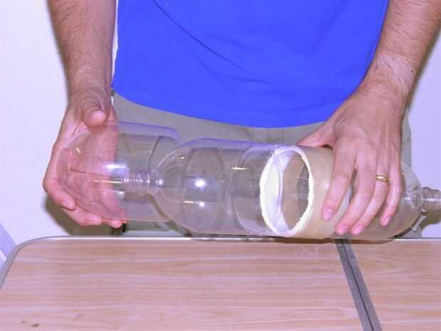 Deslice ambas mangas refuerzo sobre los extremos de las botellas como se van. Las fracturas se abrirán tal vez 1 o 2 mm.