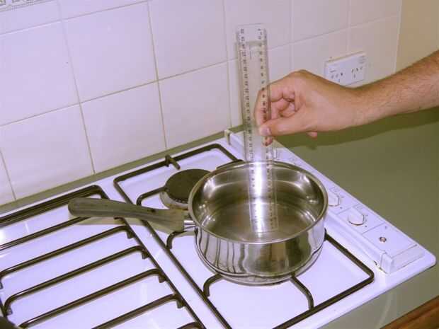 Calentar unos 3cm de agua en una cacerola de fondo plano. Use un termómetro para medir la temperatura del agua ya que es fácil de recalentar el agua.