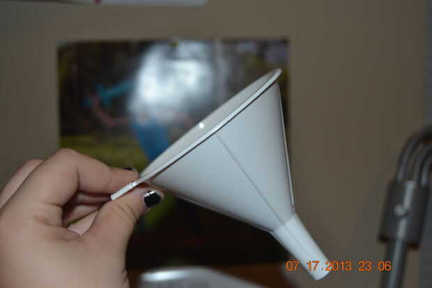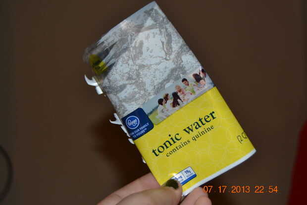 El embudo y añadir aproximadamente 1/4 de agua tónica, o hasta que la botella está llena