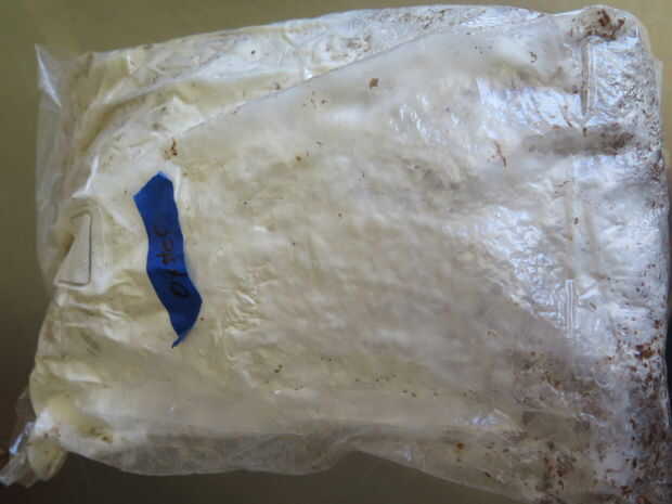 Etiqueta las bolsas tipo seta y me ponga en la nevera durante 3 semanas. Micelio blanco comenzó a trabajar su camino a través del recinto. Cuando hay un montón de blanco, está listo para sacar.