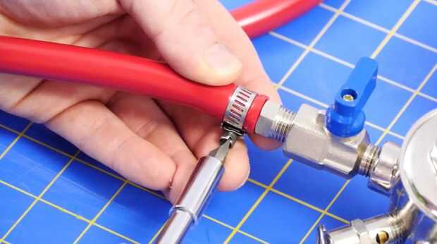 Deslice la abrazadera de manguera de 1/8 "desde el extremo de la manguera y usar el destornillador para apretar la abrazadera de la manguera sobre la conexión.