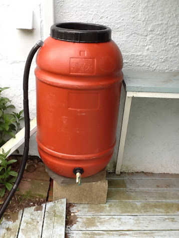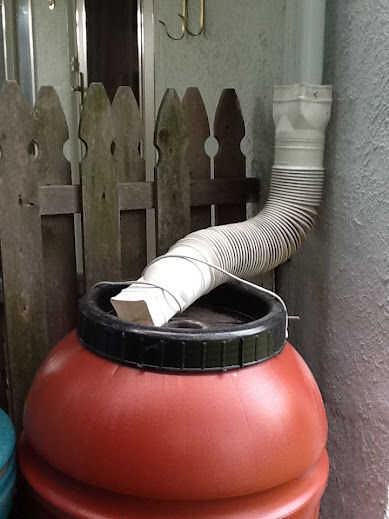 La cuarta imagen en este paso es un cañón anterior que he instalado al lado de la puerta. Muestra la bajada de agua desviada mediante una bajada de agua flexible en la parte superior del cañón. El tubo de salida continúa hasta que el drenaje que la bajada de agua que se utiliza para conectar, completando el circuito con el depósito que es el tonel de lluvia en el medio. El cable mantiene la bajada de agua flexible de la caída de la parte superior del cañón.