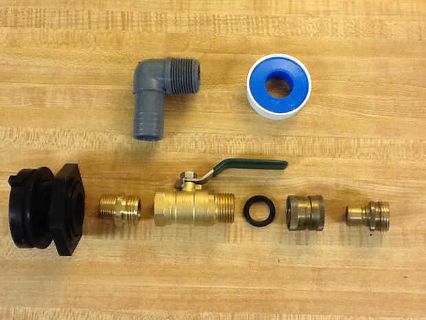 El costo de componentes entre tan poco como $25 a más de $60 dependiendo de lo que estás dispuesto a gastar. Incluyendo los componentes de Lee Valley abajo, total llegó a cerca de 40 dólares y el barril era otro $20. (Opcional conexión rápida acoplamiento añadiría otros $10.) Usted puede ser capaz de fuente menos componentes costosos.