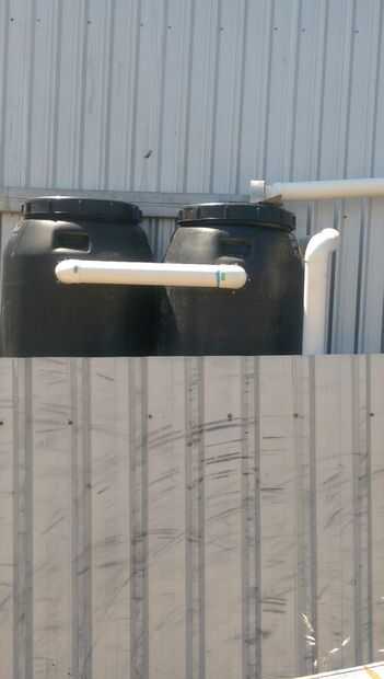 este es un sistema personalizado que diseñé para recoger el agua de lluvia que viene de mi techo y tener la capacidad de ambos para almacenar agua y distribuirla sin asociar cualquier tubería temporal. Mis disculpas de antemano que no tengo fotos que