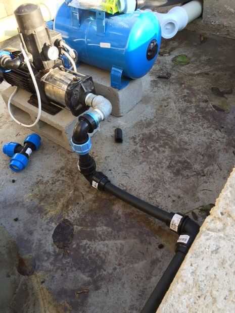 Estoy utilizando polietileno de alta densidad ya que esto va a ser mi principal y estará siempre a sobre 4,5 bar de presión. Utilizando acoples de presión. He instalado un par de toques a lo largo de la línea principal para mayor comodidad. Estos utilizo para llenar la piscina y correr la manguera para el lavado de coches. También instalé un tanque de presión para reducir la bomba ciclo encendido/apagado para pequeñas cantidades de agua (al parecer es clasificada de 100 ciclos por deber continuo de horas pero no estoy comprándola. La bomba era demasiado barata para mi de creer!).