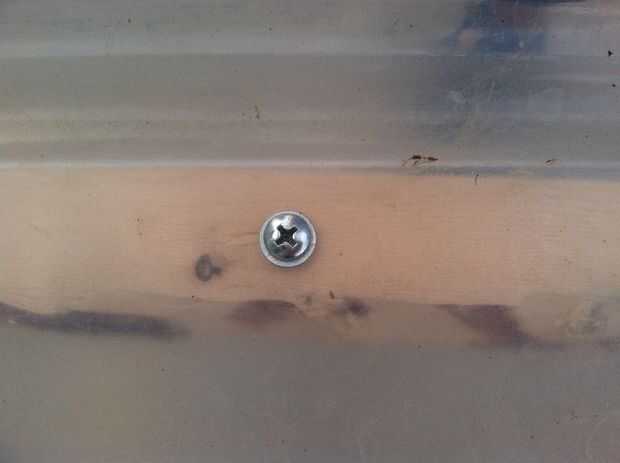 Coloque el recipiente en la parte superior del marco de madera y perfore agujeros para los tornillos. Entonces sólo colocar la arandela en el tornillo y taladro. Asegúrese de no apretar en exceso.