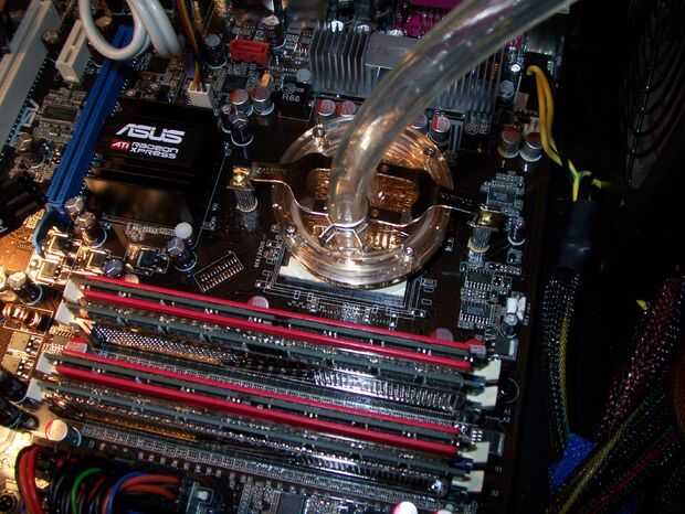 En la foto: el disipador de calor después de retirar, limpiar y se adjunta el bloque de agua (ver paso 3).