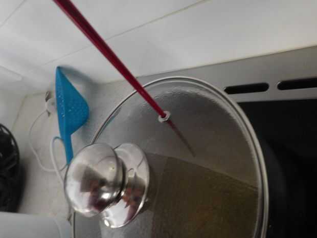 Añadir una cubierta en la parte superior para evitar los gases y la humedad dentro de la olla y si desea que puede Agregar un palillo de la tajada en el orificio para asegurarse de que permanece en el, si no tienes un palillo tuerza alguna hoja y empujar en.
