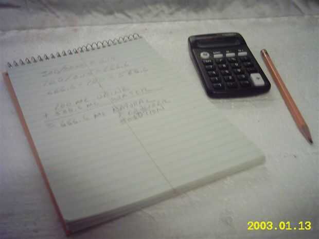 Que usted solo tiene 100 ml de orina. Dividir 100 por 0.15 para obtener 666.6. Esta es la cantidad total de solución que usted necesita.