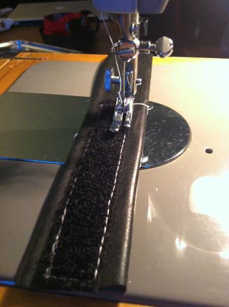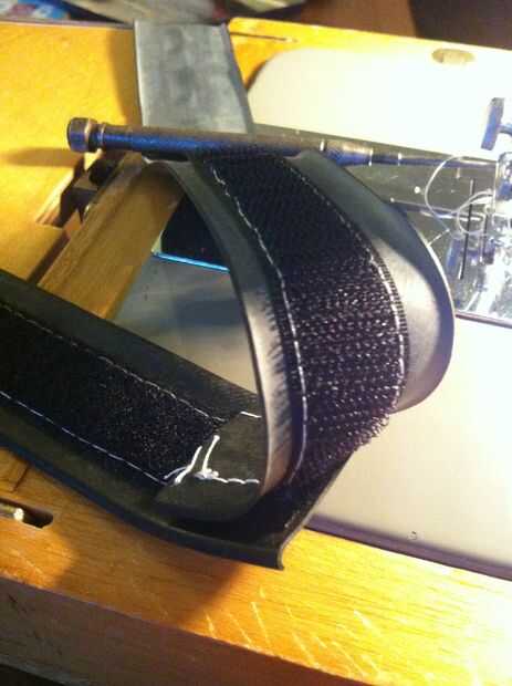 3. Coser los dos lados del gancho del velcro y tiras de lazo al lado apropiado del tubo interno, quizás tenga que aumentar la tensión del hilo superior en la máquina de coser.