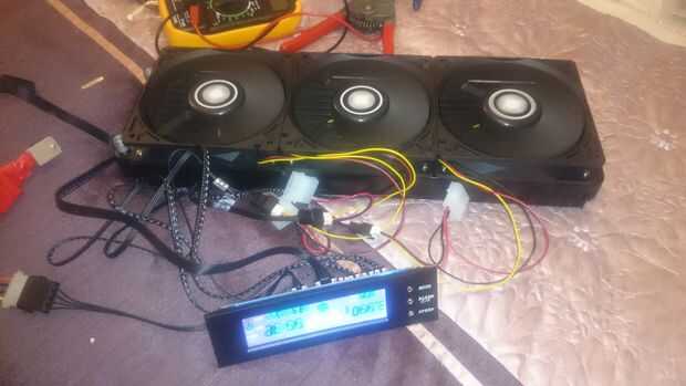 Debería ser obvio pero queremos la los ventiladores soplando en el radiador por lo que los fans deben mirar hacia afuera. Un amigo mío dijo que sería más eficaz que los ventiladores de aire - no estoy seguro qué tan cierto es pero tal vez alguien puede elaborar sobre esto. Para utilizar este método tendría que perforar algunos agujeros de entrada de aire a través de la placa de acrílico y el tablero principal para el radiador. Disculpas no puedo dejar con este método cualquier aún más.