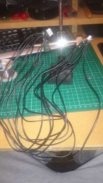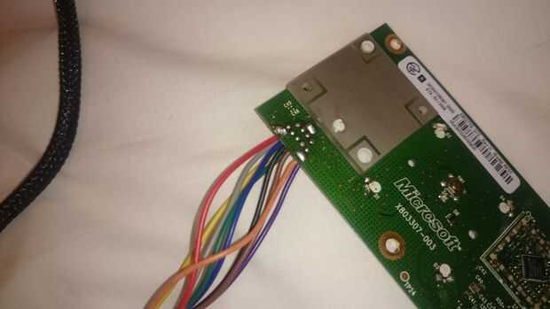 Puesto que la placa base de XBox 360 se colocará más lejos de los otros componentes de lo habitual, tenemos que extender los cables. Una vez que había colocado los componentes en el tablero principal, medí la longitud entre la placa base y el módulo de RF, unidad de DVD SATA y poder y finalmente el disco duro SATA y poder. He comprado un cable de SATA 50cm para la unidad de DVD que era tiempo suficiente para llegar a la placa base y simplemente compraron un SATA y extensión de la energía para el disco duro. La unidad de DVD sin embargo, era necesario extender los cables individualmente, así que corte a longitudes de 10 x 50cm de cable 24AWG negro (aproximadamente mismo espesor que el DVD en coche los cables). Luego cortar el conector por la mitad y había despojado a ambos lados de los extremos de los alambres y los cables recién cortados así. Luego, utilizando el diagrama, soldados les por consiguiente.
