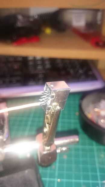 Para el módulo de RF, me unsoldered el conector y luego soldar los cables del conector directamente a la Junta. No tengo un pinout para esto así que simplemente seguí refiriéndose el conector a la placa de RF en su posición original para determinar qué pin va donde. Me heatshrinked todos los pines en el conector. Esto era ampliar el módulo de RF al panel frontal. Por favor, de la soldadura de los cables correctamente!