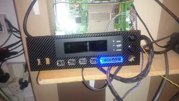 Se ampliaron los puertos USB de la placa base a este panel de control, utilizando un simple 1m largo USB A-cable macho a hembra para cada puerto. El módulo RF estuviera pegado a la parte posterior del panel de control para todos se oculta cuando se monta el panel.