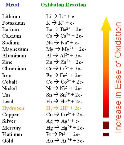 es una carta que algunos metales y cómo se comparan en términos de tasa de oxidación. Los metales más abajo en la tabla tendrá para ya. También hay una tabla más detallada aquí. Para este proyecto, que usando un electrodo de carbono. Estos pueden compactarse fácilmente de las baterías de la linterna. Para una guía sobre cómo hacerlo, visite esta página. Electrodos de carbono también se pueden comprar como carbono escopleo con gubia los electrodos de un proveedor de soldadura para alrededor de 50 centavos.