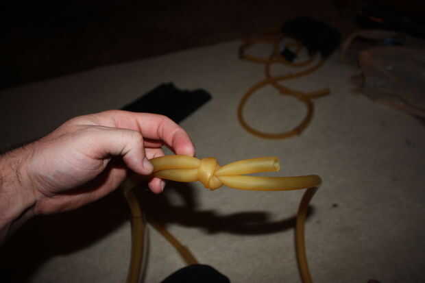 En primer lugar, tomar el tubo quirúrgico (aproximadamente 10 pies) y cortar por la mitad. Si usted está haciendo más de una