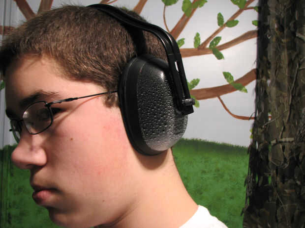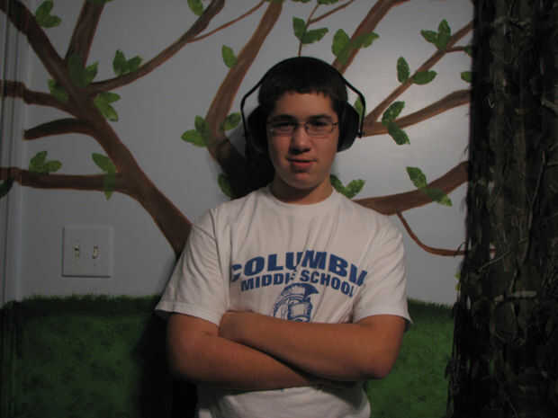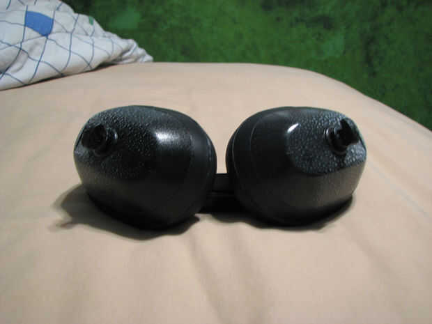 Las orejeras eran sólo un par barato, rojo vendido en la sección de artículos deportivos de Wal-Mart. Los auriculares eran algunos antiguos, rotos que se encuentran alrededor de la casa. La pintura era sólo regular, pintura en aerosol esmalte (brillante, no es plano).