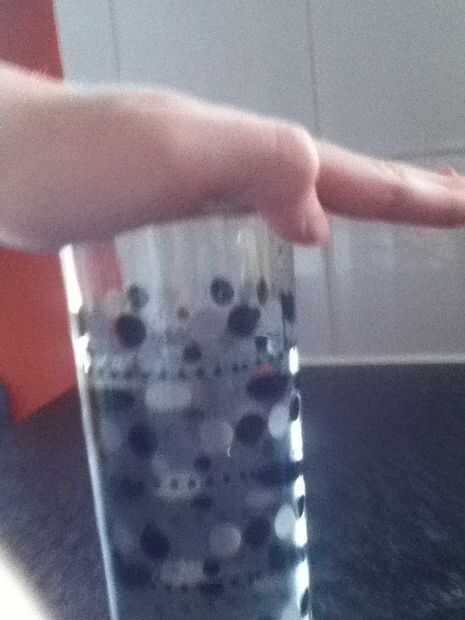 Tiene las 2 tazas de agua delante de usted elige 1 y ponga su mano sobre él