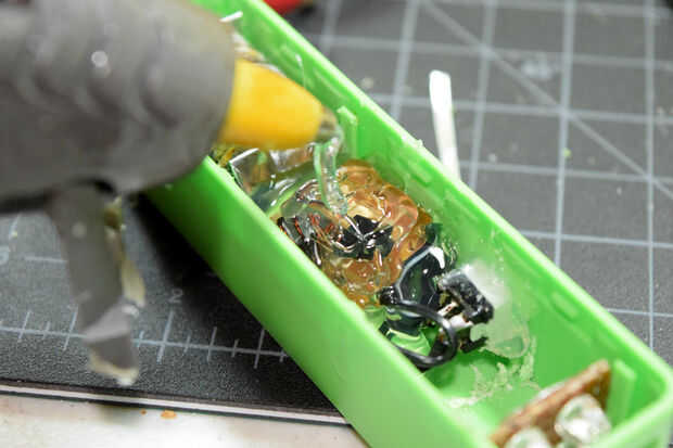 La forma más fácil de la electrónica de impermeabilización es mediante la aplicación de una gruesa gota de pegamento caliente alrededor de él.