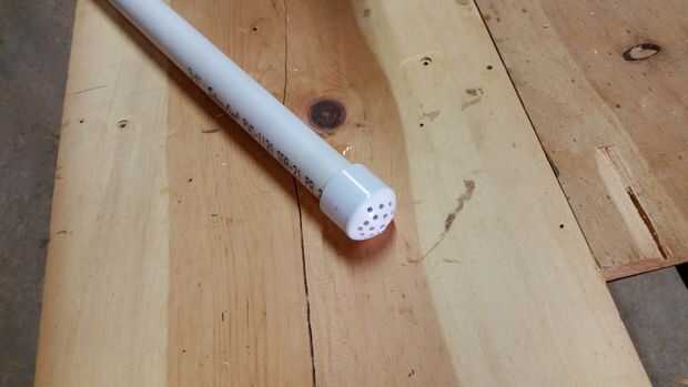 Perforé varios agujeros en la tapa para actuar como un cabezal de ducha y luego ponerlo en el extremo de la tubería con ningún pegamento.