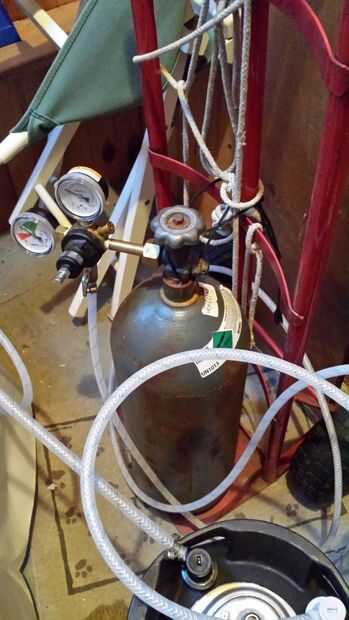Por lo tanto, ahora un poco de la física de la carbonatación. Lo principal es que la temperatura del agua y la presión del CO2 son importantes. El más frío el agua y cuanto mayor sea el CO2 presión, más CO2 se disuelve en el agua. Así que si desea mantener el tanque de agua en un ambiente controlado de temperatura no, como yo, encontrará usted tiene que meterse con la presión de CO2 a compensar. También, si el agua está lo suficientemente caliente, lo se todo efervescencia hacia fuera en el tiempo que toma y de la espita y alcanzar el fondo del vaso, así manteniéndola fuera en un caluroso día de verano no va a funcionar. Para selzers, generalmente queremos una alta carbonatación, así que mantener las presiones en el barrio de 30 psi, pero esto es una cuestión de preferencia personal.