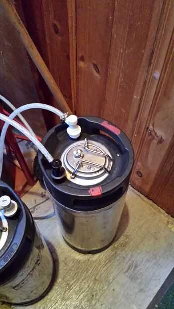Ahora el barril Cornelius o cursi barril o barril de korny. Éstos están disponibles como pequeños como 2.5 galones y hasta tamaño de 20 galones. Se trata de un tamaño de cinco galones, que es la más comúnmente disponible. La industria de la soda solía usar éstos en gran número para el servicio de fuente de soda, y todavía están fácilmente disponibles utilizados. Entre 45-100 dólares cada una, utiliza para nuevo. Hay un gas y un líquido hacia fuera de la guarnición, y éstos son diferentes. Así que si son forzarla, probablemente intenta ponerlo en el mal. las conexiones desmontables pueden pin lock(coca-cola) o una versión de cerradura (pepsi y demás) selección de la bola y quedarse con él.